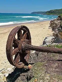 The first coal discovered in Australia must be given to the escaped convicts William and Mary Bryant on their journey to Timor. They were the first Europeans to set foot in the area,[7] discovering coal near the entrance to Glenrock Lagoon on 30 March 1791. They named it Fortunate Creek because they found food there and friendly Aborigines. However, the news did not get back to Sydney and it was Lieut John Shortland R. N. who received credit for the discovery of coal in Newcastle on 9 September 1797. Even today, coal can still be found in the cliff face on the northern headland at the mouth of Glenrock Lagoon.[8]