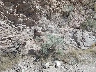 ![]() Quartzite of the Glenwoody Formation at the base of the Pilar Cliffs, New Mexico, United States | |