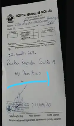 - ^ "Excongresista Glider Ushñahua falleció en Hospital de EsSalud de Ucayali". canaln.pe (in Spanish). 16 April 2020. Archived from the original on 21 April 2020. Retrieved 23 May 2020.