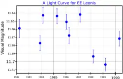 - ^ Weis, Edward W. (March 1994). "Long Term Variability in Dwarf M Stars". The Astronomical Journal. 107 (3): 1135–1140. Bibcode:1994AJ....107.1135W. doi:10.1086/116925. Archived from the original on 1 March 2022. Retrieved 19 January 2022.