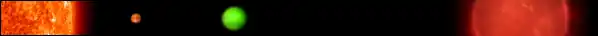 Gliese 777 c, often catalogued as Gliese 777 Ac or simply HD 190360 c, is an extrasolar planet approximately 52 light-years away in the constellation of Cygnus. The planet was discovered orbiting the primary star of the Gliese 777 system in 2005 using the radial velocity method and confirmed in 2009.[2][3] The planet was once called the "smallest extrasolar planet discovered", but this is currently no longer the case. With a mass just 25 times that of the Earth, the planet is likely a "hot Neptune" planet, a small Jovian planet, or possibly a large terrestrial planet (a super-Earth).