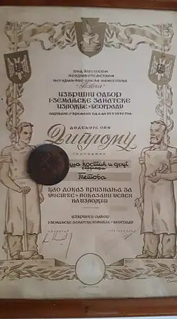 | Awards | Belgrade exhibition of crafters of Yugoslavia |