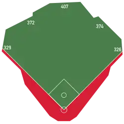 | Field size | Baseball:[2] Left field: 329 ft (100 m) Left center: 372 ft (113 m) Center field: 407 ft (124 m) Right center: 374 ft (114 m) Right field: 326 ft (99 m) Backstop: 42 ft (13 m) ![]() |