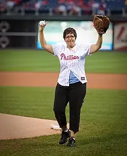 Casarez also made history in Philadelphia sports: she threw out the ceremonial first pitch at Citizens Bank Park before a Philadelphia Phillies game against the Houston Astros on August 23, 2010.[53]