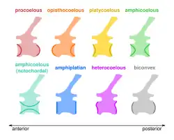 - procoelous (noun: procoely) centra are anteriorly concave and posteriorly convex.