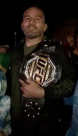 Glover Lucas Teixeira (Portuguese pronunciation: [ˈɡloveʁ tejˈʃejɾɐ]; born 28 October 1979) is a Brazilian-American former professional mixed martial artist. He competed in the Light Heavyweight division of the Ultimate Fighting Championship (UFC), where he is a former UFC Light Heavyweight Champion. Teixeira is a former member of the Brazilian National Wrestling Team and has competed in the WEC, Impact FC, PFC and Shooto. He is the second oldest UFC champion in history behind Randy Couture and the oldest first time champion in UFC history.