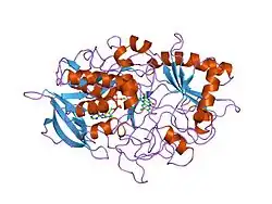 - ^ Li J, Vrielink A, Brick P, Blow DM (November 1993). "Crystal structure of cholesterol oxidase complexed with a steroid substrate: implications for flavin adenine dinucleotide dependent alcohol oxidases". Biochemistry. 32 (43): 11507–15. doi:10.1021/bi00094a006. PMID 8218217.