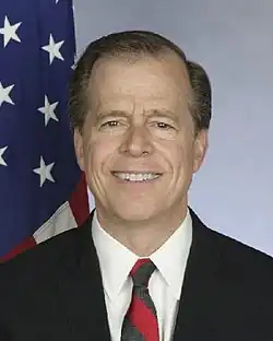 Some of his senior-level diplomatic assignments include serving as the Director of the State Department Operations Center from 1992 to 1994, and Deputy Spokesman and Deputy Assistant Secretary of State for Public Affairs from 1995 to 1997. From there he went on to be Executive Secretary of the White House National Security Council Staff from 1997 to 1999.[5] He served as Deputy Chief of Mission (with the rank of minister) at the U.S. Embassy in London, United Kingdom from 1999 to 2003 before receiving his first ambassador-level ranking as Political Director of the U.S. Presidency of the G-8 from 2003 to 2004. He also served as Deputy Assistant Secretary for European Affairs from 2004 to 2005; Acting Assistant Secretary in the Bureau of Democracy, Human Rights and Labor in 2005; Principal Deputy Assistant Secretary of State for East Asian and Pacific Affairs from 2006 to 2009; Permanent Representative (with the rank of ambassador) to the International Atomic Energy Agency and the United Nations Office in Vienna from 2009 to 2012.