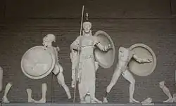 To the most famous sculptures of Classical Greece belong the portrait of Homer (460 BC), the so-called Munich King (460 BC), who probably represented Hephaestus, the Statue of Diomedes (430 BC), the Medusa Rondanini (440 BC), the Funeral stele of Mnesarete (380 BC), the Statue of Eirene (370 BC), the grave relief of a youth with his hunting dog (360 BC), a portrait of Plato (348 BC), the Alexander Rondanini (c. 338 BC) and the Ilioneus (c. 320 BC).
