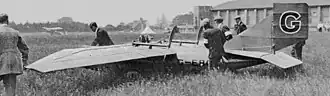 Gnosspelius was head of the research department of Short Brothers, for whom he had devised an ingenious mechanism for testing aerofoil sections, the Gnosspelius Aerodynamic Pendulum.[2] Tests using this had indicated that incorporating a small step into the upper surface of the wing at the point of its greatest thickness would reduce drag, and Gnosspelius had started work on the design of a small glider using this discovery when, in early 1923, two prizes intended to promote the development of light aircraft were announced.