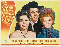 Go West, Young Lady is a 1941 American comedy western film directed by Frank R. Strayer and starring Penny Singleton, Glenn Ford and Ann Miller. It was produced and distributed by Columbia Pictures.[1]