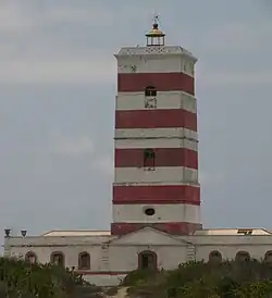 The island has a solar powered lighthouse located at the entrance of the Mossuril Bay,[5] it is used as a guide for the offshore vessels en route to Island of Mozambique and is still in service, run by the lighthouse keeper and his family that lived in Goa, India for more than two decades. It is one of the oldest and popular lighthouses in Mozambique, built during the Portuguese Mozambique era in 1876 and is an oldest example of the robust square tower design of lighthouses in Zanzibar and the coast of German East Africa (now Tanzania).