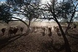 The area around Gobabis and along the Nossob River had a strong population of elephants. The settlement itself was a base camp for ivory hunters and a trading post for elephant tusks.[3]
