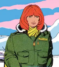 Madelyne Pryor was a cargo pilot in Anchorage, Alaska working for Scott Summers's grandparents when she and Scott meet during a Summers family reunion.[17] A romantic relationship quickly begins between them, however, Scott is disturbed at her striking resemblance to Jean Grey.[18] Also, she was the sole survivor of an airplane crash that occurred the same day Jean died on the moon.[19] In addition, Professor X is unable to telepathically scan her mind, noting it is a rare immunity that does exist even in normal human brains. Scott, still recovering from Jean's death, becomes obsessed with the idea that Madelyne is Jean's reincarnation, eventually confronting her with these suspicions. Madelyne, furious and hurt, punches Scott and runs from the latter.[5] As soon as she is alone, she is abducted by Mastermind who had been manipulating the X-Men for months as revenge by having Madelyne appear as the Phoenix. Storm summons a violent storm which defeats Mastermind and nearly kills Madelyne, but Scott resuscitates her. After the conflict, Scott comes to terms with the fact that Jean is dead and that Madelyne is someone else, and that Scott loves her all the same. The two are married, and Scott retires from active duty with the X-Men.[6][20]