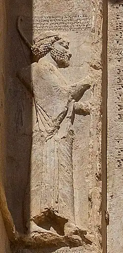 Gobryas was one of the six helpers of Darius in killing Gaumāta in September 522 BC mentioned by Herodotus. He was appointed as Darius' lance carrier (arštibara). He is represented on the Behistun inscription and on Darius' tomb in Naqsh-e Rustam, as:[3]