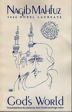 God's World (Dunyā Allah) is a short story collection by the Egyptian writer Naguib Mahfouz. The collection consists of fourteen stories, long and short. In his collection, Mahfouz takes the reader through Al-Ḥusayn suburbs and Al-'Abbasiyya streets before stopping on Alexandria’s beach and passing through the cemeteries before taking them to a wedding, leading out of a mosque, and finally heading to a bar. This short story collection acts as a lens, clarifying reality. He presents the lives of people from all classes, using aesthetics and concise language.[1] The stories in the collection were published separately in Al-Ahram newspaper between 1961-1962,[2] and they present causes and visions relevant to the 1950s and early 1960s.[3] ‘God’s World’ was published after 25 years after the publication of Mahfouz's first short story collection ‘Hams Al-Junun' or ‘Whisper of Madness.’ During the period between these two collections, Mahfouz had already established himself as a novelist, for some of his most notable novels were published during that period, like ‘Autumn Quail’ and ‘Medaq Alley.’ It is believed that his becoming a member of Al-Ahram's editorial team drove him to pick up his interest in short stories once more.[2]