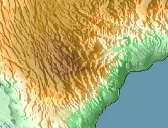 The Goda Mountains lie northwest of the Gulf of Tadjoura, Tadjoura Region in Djibouti. They rise to 1,750 metres (5,740 ft) above sea level and are the nation's largest heavily vegetated area and is the second highest point in Djibouti. The name Goda in Afar means "twisted" or "devoured" and refers to a ridge. A part of the mountains is protected within the Day Forest National Park, Djibouti's only national park.[1] The ecology of this landform is considered an isolated outlier of the Ethiopian montane grasslands and woodlands ecoregion, an important island of forest in a sea of semi-desert.