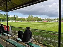 Godalming initially played at the Recreation Ground, before moving to the Weycourt ground, taking over the tenancy from Farncombe.[2] Improvement works at the site included moving the pitch to the site of a former rubbish tip. During the works, the club temporarily played at Broadwater Park.[2] In 1985 the main stand from Addlestone & Weybridge Town's Liberty Lane ground was purchased for £225 after the club folded.[2] The ground was renamed the Bill Kyte Stadium in 2018 in honour of a former president.