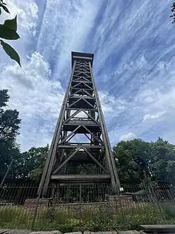 The Goethe Tower (German: Goetheturm) is a 43-metre-high (141 ft) public observation tower built entirely out of wood on the northern edge of Frankfurt City Forest located in Sachsenhausen (Frankfurt am Main). The tower was built in honour of the German writer and poet Johann Wolfgang von Goethe. Apart from some taller wooden radio towers, it is the fifth-tallest wooden construction in Germany after the Jahrtausendturm in Magdeburg, the Eichberg Tower in Emmendingen, the Blumenthal Observation Tower and the Weißtannenturm in Kehl.