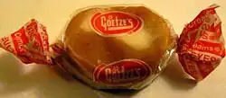 Goetze's Candy Company, Inc., (pronounced gets) is an American confectionery company based in Baltimore, Maryland specializing in caramel-based candies. Goetze's was established in 1895 as the Baltimore Chewing Gum Company by August Goetze and his son, William. In 1917, the family developed a soft, caramel candy (known as "Chu-ees"[1]) which ultimately evolved into their signature candy, Caramel Creams (also known as Bull's Eyes), a soft chewy caramel with cream filling in the center.[1] Each candy is packaged in a predominantly clear wrapper and twisted at two red and white ends.[2]