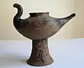 The Golasecca culture is best known for its burial customs, where an apparent ancestor cult imposed respect for the necropolis, a sacred area untouched by agrarian use or deforestation. The early-period burials took place in selected raised positions oriented with respect to the sun. Burial practices were direct inhumation or in lidded cistae. Stone circles and alignments are found.[11] Burial urns were painted with designs, with accessory ceramics, such as cups on tall bases. Bronze objects are usually of wearing apparel: pins and fibulas, armbands, rings, earrings, pendants and necklaces. Bronze vessels are rare. The practice of cremation persists into the second period (early sixth to mid-fourth centuries).