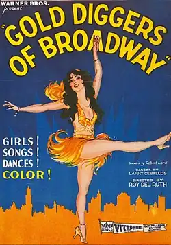 Based on the 1919 play The Gold Diggers[4]—which was also turned into a silent film of the same name in 1923—Gold Diggers of Broadway utilized showgirls, Technicolor, and sound as its main selling points.