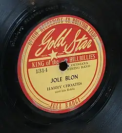 In 1946, Quinn founded Gold Star Records, initially recording local country (or "hillbilly") artists before expanding to record local blues and Cajun artists. In 1947, Gold Star had its first hit record, "Jole Blon" by Harry Choates, a swing and dance tune that and became the first and only Cajun record to reach the Billboard Top Five.[2] In 1948, Lightnin' Hopkins' songs "T-Model Blues" and "Tim Moore's Farm", both became top 10 national hits, and Hopkins would record over 100 songs with Gold Star. Quinn also signed Lil' Son Jackson to the Gold Star Label, releasing "Freedom Train Blues" in 1948, which became a nationwide hit for Jackson.[3] Quinn would also release several Cajun songs on his Opera label.[4][5]