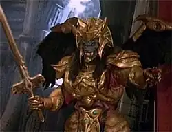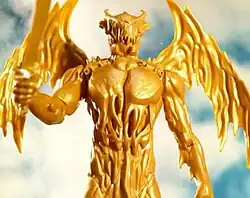 Goldar (known as Flydar in the pilot episode) is a fictional character from the television series Mighty Morphin Power Rangers. A powerful yet overconfident warrior that serves under the command of Rita Repulsa and Lord Zedd, he is one of the chief antagonists of the titular protagonists in the show's first three seasons. Goldar is based on the Kyōryū Sentai Zyuranger villain Grifforzar (also spelled as Grifforzer or Griforza by some sources).[1][2]
