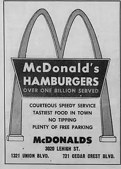 - ^ Strunsky, Steve (December 10, 2018). "Only 7 original McDonald's golden arches still exist, and one is in N.J." NJ.com. Archived from the original on August 23, 2021. Retrieved August 23, 2021.