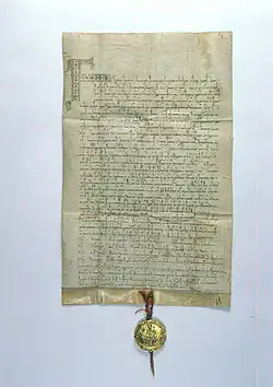 The Golden Bull of Sicily (Czech: Zlatá bula sicilská; Latin: Bulla Aurea Siciliæ) was a decree issued by the King of Sicily and future Emperor Frederick II in Basel on 26 September 1212 that confirmed the royal title obtained by Ottokar I of Bohemia in 1198, declaring him and his heirs kings of Bohemia.[1][2] The kingship signified the exceptional status of Bohemia within the Holy Roman Empire.