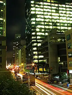 Golden Gate University evolved out of the literary reading groups of the San Francisco Central YMCA at a time when, according to one contemporary estimate, only one of every two thousand men had a college education.[5] GGU shares its YMCA roots with a number of other U.S. universities, including Bentley University, Capital University Law School, Michigan State University College of Law, Northeastern University (Boston, Massachusetts), Northern Kentucky University Salmon P. Chase College of Law, Roosevelt University, South Texas College of Law, University of Toledo College of Law, Western New England University, and Youngstown State University. On November 1, 1881 at the YMCA building at 232 Sutter Street, which the organization had occupied since 1868, the YMCA Night School was established. Classes were offered in bookkeeping, mathematics, stenography, elocution, Spanish and gymnastics.[6] Successful completion of these courses led to a certificate that was recognized by more than 100 colleges and trade schools. Other offerings of the association would include a common school for boys. In April 1894 the YMCA moved to a new five-story building at the northeast corner of Mason and Ellis Streets.[7]