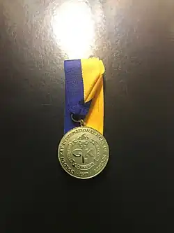 At commencement, Golden Key members may wear a royal blue and golden yellow ribbon attached to their mortar board or a gold and royal blue cord.[11][12] Its honor stole is a gold satin sash embroidered with a Golden Key logo in blue. The Gold Key medallion is gold colored and hangs from a ribbon that is royal blue and gold.[11] Members who have the highest GPA in four undergraduate divisions may wear the medallion.[11]