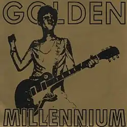 To commemorate the end of the 2nd millennium, Peek-A-Boo Records released the Golden Millennium EP on December 31, 1999. Peek-A-Boo labelmates Dean Hsieh (The 1-4-5s, Teen Titans, The Wontons), Travis Higdon (The 1-4-5s, The Kiss Offs, Black Lipstick), Tom Hudson (Silver Scooter), and Britt Daniel (Spoon, Drake Tungsten, Skellington, The Alien Beats) got together in 1999 and formed the '70s glam-inspired supergroup Golden Millennium. As the label's website reports, Golden Millennium formed as a joke when Hsieh and Higdon bought matching gold-glitter Gibson Les Paul guitars.[2] Coincidentally, Hudson had gold-glitter drums, and the idea of forming a glam band was conceived.[2] The three recruited Daniel on bass, and the group learned a slew of covers and a few originals with the intent of playing only one show.[2] The performance went so well that Golden Millennium recorded the Golden Millennium EP and played one final reprise show at the close of 1999.[2]