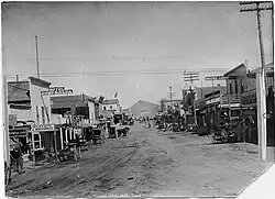 The community was named for deposits of gold near the original town site.[4] Gold was discovered at Goldfield in 1902, its year of inception. By 1904, the Goldfield district produced about 800 tons of ore, valued at $2,300,000, 30% of the state's production that year.[5] This remarkable production caused Goldfield to grow rapidly, and it soon became the largest town in the state with about 20,000 people.[6]