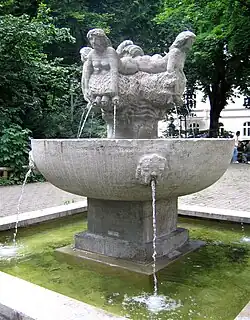 The Vier-Nymphen-Brunnen (Four Nymphs Fountain ) by Elmar Dietz has been located on the eastern part of the square since 1938.[6]