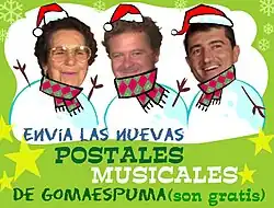Cándida Villar, Juan Luis Cano (center) and Guillermo Fesser in a Christmas card