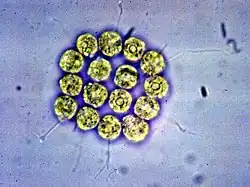 - ^ Nozaki, Hisayoshi; Itoh, Motomi (1994). "Phylogenetic relationships within the colonial Volvocales (Chlorophyta) inferred from cladistic analysis based on morphological data". Journal of Phycology. 30 (2): 353–365. Bibcode:1994JPcgy..30..353N. doi:10.1111/j.0022-3646.1994.00353.x.