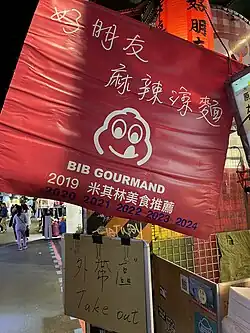 - ^ "MICHELIN Guide Taipei 2019 Bib Gourmand Selection: Street Food". MICHELIN Guide. Archived from the original on 2023-12-10. Retrieved 2024-12-05.
