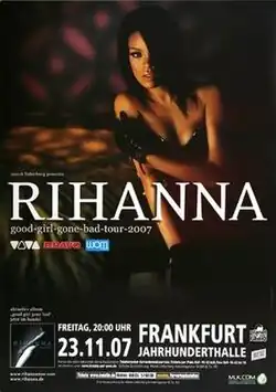 The Good Girl Gone Bad Tour was the second overall and first world concert tour by Barbadian singer Rihanna, in support of her third studio album Good Girl Gone Bad (2007). The setlist was composed of songs mostly from Good Girl Gone Bad but also included some songs from her first two albums. Akon was selected as the opening act for the Canadian dates of the North American leg, while Ciara and David Jordan supported the UK dates of the European leg. Chris Brown joined the tour during the Oceanian leg.