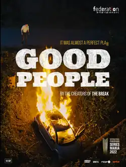 Good People (French: Des gens bien) is a 2022 Belgian television crime drama, comedy series. Its six episodes were broadcast from 23 October 2022 on La Une. It was created, written and directed by Stéphane Bergmans, Matthieu Donck and Benjamin d'Aoust. It was produced by Helicotronc, RTBF, Arte, Unité and Proximus.[1][2][3] Action is set in mid-2022 in the fictitious border towns of Juvin (Belgium) and Ressac (France), and the surrounding areas. Good People stars Lucas Meister as a policeman, Tom who stages a car accident, which supposedly killed his wife, Linda (Bérangère McNeese). It was broadcast in France via Arte and streamed in Australia on SBS-TV's On Demand from 13 April 2023.[4][5] The series won the Grand Prix for TV series at the Luchon TV Festival 2023.[2][3][6][7] In late April 2023 series creators Donck, Bergmans and d'Aoust confirmed that a second season was being prepared.[8]