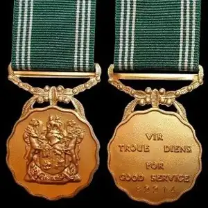The Good Service Medal, Gold, originally named the South African Defence Force Good Service Medal, Gold, is the senior of a set of three military medals which was instituted by the Republic of South Africa on 1 July 1975. It was initially awarded to members of all elements of the South African Defence Force for thirty years of exemplary service, but was restricted to Permanent Force personnel from 1993.[1]