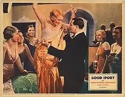 Good Sport is a 1931 American pre-Code comedy film directed by Kenneth MacKenna and written by William Hurlbut. The film stars Linda Watkins, John Boles, Greta Nissen, Minna Gombell, Hedda Hopper and Alan Dinehart. The film was released on December 13, 1931, by Fox Film Corporation.[1][2][3]