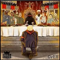 On March 20, 2017, Crooked I posted an image via social media with the caption "Burnin incense to set the vibe.. GVE2", which suggested a sequel to his previous album Good vs Evil.[2] On March 28, 2017, Crooked I confirmed on Twitter that his upcoming album would indeed be a sequel to Good vs. Evil.[3] In an interview with XXL Magazine, Crooked I stated that the new record will be more politically-driven in comparison to the album's predecessor, with lyrics dealing with subjects such as social injustice, racism, classism, and consumerism.[4] The album's cover art features United States president Donald Trump kneeling before a committee of people such as Adolf Hitler, Joseph Stalin, and Bin Laden.