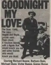 Goodnight, My Love is a 1972 American television mystery film directed by Peter Hyams and starring Richard Boone, Barbara Bain and Michael Dunn.