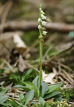 Goodyera repens, an orchid in the genus Goodyera, is called by the common name creeping lady's-tresses in Anglophone Europe[2] and dwarf rattlesnake plantain or lesser rattlesnake plantain in North America.
