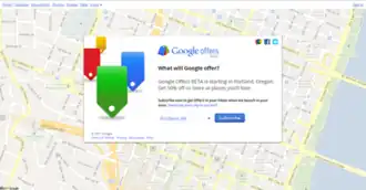 - ^ "Google Offers Beta Expanded From Portland To New York And The SF Bay Area". TechCrunch. July 12, 2011. Retrieved July 7, 2013.