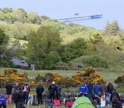 An historic location on the TT race course after the climb up from Ramsey demarking the end of the tree-line and start of the Mountain section with a height of 550 feet (168 metres) above sea level,[3] the Gooseneck is a popular vantage point for the spectators and a traditional signalling point for TT riders' intermediate race timings from their own back-up crews, one of a number of points around the course where the race machines slow enough to get a good look at the signal boards on the exit.[4] For the same reason, the location has always been popular with professional photographers and film-crews.