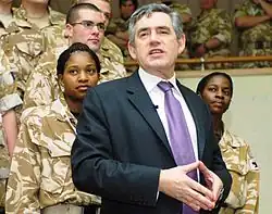 Brown went to great lengths to empathise with those who lost family members in the Iraq and Afghanistan conflicts. He has often said "War is tragic", echoing Blair's quote, "War is horrible".[114] Nonetheless, in November 2007 Brown was accused by some senior military figures of not adhering to the Military Covenant, a convention within British politics ensuring adequate safeguards, rewards and compensation for military personnel who risk their lives in obedience to orders derived from the policy of the elected government.[115]