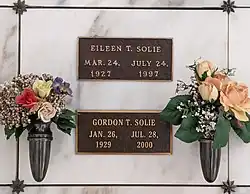 Solie's last announcing job was to be the Heroes of Wrestling pay-per-view in 1999, but he could not attend due to failing health. He was diagnosed with cancer soon after his retirement, and in the late-1990s, his vocal chords were removed due to throat cancer.[5] He died of the disease on July 27, 2000, at the age of 71.[5] His wife Eileen (known to friends as "Smokey") had died three years before, also from cancer.[3][5] In 2005, Florida Media, Inc. published a collection of Solie's short stories and poetry in Gordon Solie ... Something Left Behind.[4] Solie was survived by his five children Pam, Jonard, Denise, Greg, and Eric.[12]