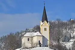 The local church is dedicated to Saint Urban and belongs to the Parish of Slivnica pri Celju. It dates to the early 17th century and was consecrated in 1621. In the 19th century it was partially rebuilt and vaulted.[6]